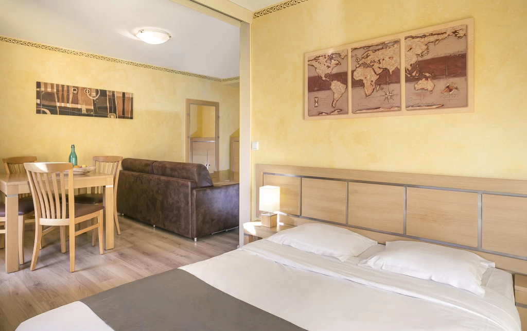 - kétszintes apartman, egy hálószoba két emeletes ággyal.